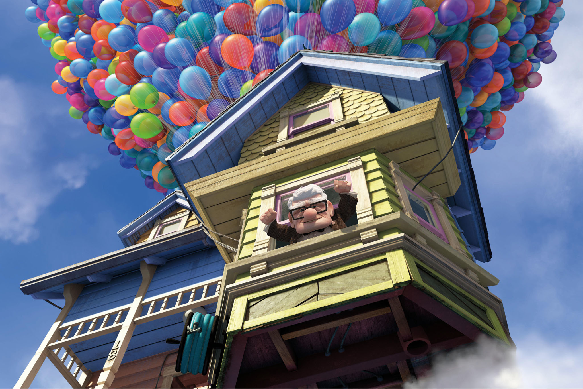 من خلال ربط آلاف البالونات بسقف منزله، يقرر المسن (كارل فريدريكسين) تحقيق حلم حياته أن يرى براري أمريكا الجنوبية، ويدرك مباشرة بعد الإقلاع أنه ليس وحيدًا في رحلته، لأن (راسل) المستكشف الذي يصغره بـ70 سنة، أصبح من غير قصد مرافقًا في هذه الرحلة.